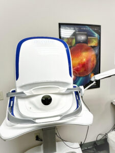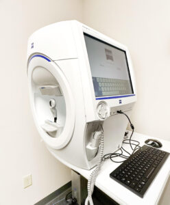 This mini-visual field test gives a quick determination of the areas of your vision that are working correctly. The test is quick and easy. All you have to do is click a button if you see a wavy line inside of the instrument. Utilizing this technology allows the doctors to ensure the best care for each and every patient.