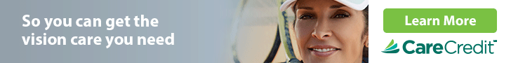 What is CareCredit? With CareCredit you can purchase Eye Examination services, Contacts lenses, and Eyeglasses and pay over time. Click the banner below to learn more. Divide cost by 12 months or 6 months at 0% financing on most plans.